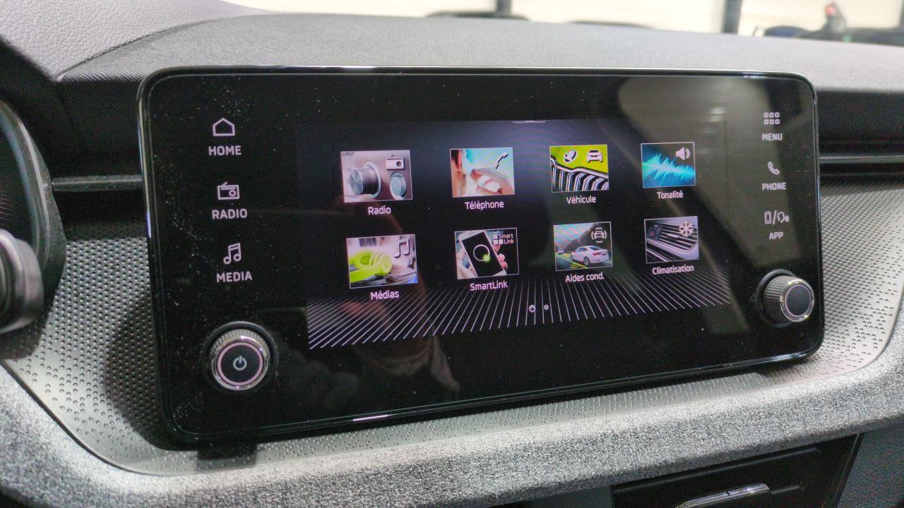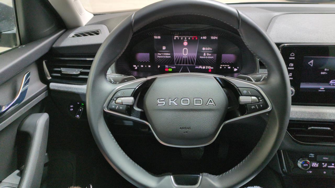 Équipements : 3ème appuie-tête AR à la place centrale,Accoudoir AV Jumbobox avec surpiqûres,Aide au démarrage en côte,Airbags frontaux conducteur et passager AV (dont passager déconnectable),Airbags latéraux AV avec airbags rideau,Allumage automatique des feux avec fonctions Coming Home / Leaving Home,Antenne shark,Antidémarrage électronique,Aumônières au dos des sièges AV incluant des rangements pour téléphone,Avertisseur de ceinture de sécurité non-bouclée,Bacs de rangement dans les portes AV et AR,Banquette AR rabattable 2/3-1/3,Blocage de l’arrivée de carburant en cas d’accident,Boîte à gants éclairée,Cache-bagages,Calandre AV chromée,Ciel de toit gris perle,Climatronic : climatisation automatique bi-zones + fonction Air Care,Commandes de climatisation chromées,Console centrale avec porte-bouteille et prise 12 V,Correcteur électronique de trajectoire ESC, incl. ABS, MSR, ASR, XDS+, HBA, DSR, MKB, EBV, EDL, RBS, ESBS, TSA,Design intérieur Loft : sellerie tissu noir Satin Black et matériau recyclé gris Krepp recycled ciel de toit gris perle,Diffuseur AR gris platine,Digital Display 8″: compteurs digitaux personnalisables,Direction assistée électrique,Disques de frein AV/AR,Déblocage automatique des portes et activation des feux de détresse en cas d’accident,Détecteur de fatigue,Détecteur de pluie,Eclairage de plaque AR à LED,Eclairage du coffre à bagages,Ecran d’info-divertissement 8,25 » (8 HP, Radio AM/FM, DAB, 2 ports USB-C 45W à AV),Essuie-glace AR,Essuie-glace AV aéro à intermittence,avec capteur de lumière,Feux AR Full LED avec clignotants à défilement,Feux AR antibrouillard à LED,Feux AV antibrouillard à LED avec feux de virages,Fixation ISOFIX sur siège passager AV incluant Top-Tether,Fixations ISOFIX sur banquette AR incluant 2 Top-Tether,Frein de parking mécanique,Front Assist: aide au freinage d’urgence incluant détection des piétons,Insert décoratif sur la planche de bord en matériau recyclé gris Krepp recycled, liseré noir glossy et inserts de porte noir « Satin Black »,Jantes alliage 16″ Cortadero Aero argent,Kessy Go : système démarrage sans clé,Klaxon mono-ton,Lampes de lecture supplémentaires pour conducteur et passager,Lane Assist : système d’aide au maintien dans la voie,Lumière de courtoisie AV/AR,Lunette AR dégivrante,Pack Chrome : Vitres et lunette AR surteintées, Baguettes de vitre chromées, Rampes de pavillon argent,Pack Technologie : 2 prises USB-C à l’AR (recharge uniquement), Accoudoir central à l’AV, 8 HP, Smartlink sans fil, Augmentation puissance délivrée des 2 prises USB-C à l´AV à 45 W,Pare-chocs AV avec sabot gris platine,Pare-chocs couleur carrosserie,Pare-soleil AV conducteur et passager avec mirroir de courtoisie,Peinture métallisée Gris Graphite,Phares AV Full LED (feux de jour, feux de croisement, feux de route et clignotants à LED),Planche de bord en plastique moussé,Poignées de porte couleur carrosserie,Poignées de portes intérieures chromées,Poignées intérieures de maintien à l’AV et à l’AR avec crochet à l’AR,Pommeau de levier de vitesse et poignée de frein de parking en cuir,Radar de stationnement AR,Radio numérique DAB (Digital Audio Broadcasting),Rampes de pavillon argent,Rangement dans le coffre derrière les passages de roues,Rappels de clignotants à LED intégrés dans les rétroviseurs extérieurs,Réglage lombaire manuel des sièges AV,Réglage manuel du site des phares,Régulateur + Limiteur de vitesse,Rétroviseur intérieur électrochromatique,Rétroviseurs extérieurs couleur carrosserie,Rétroviseurs extérieurs rabattables électriquement et électrochromatique côté conducteur,Rétroviseurs extérieurs à réglage électrique et dégivrants,Sièges Confort,Sièges conducteur et passager AV réglables en hauteur,Système Bluetooth,Système Stop&Start,Système de contrôle de pression des pneus,Traffic Sign Recognition (Système de reconnaissance des panneaux de signalisation),Verrouillage centralisé incluant 2 clés pliantes,Vitres AV et AR électriques avec système à impulsion,Vitres lattérales et AR athermiques,Volant 2 branches en cuir avec palettes multifonctions,Volant réglable en hauteur et en profondeur,